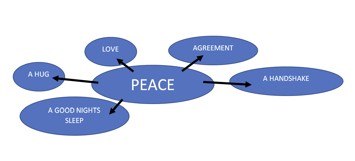 3. Individual assignment: Make a mind map and write down all the words you associate with peace. Here is an example: